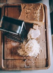 The material is beech, an attractive and forgiving material – for knives as well as for the environment. Size and weight of the cutting board has been adapted to suit an “ordinary” kitchen.