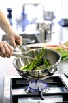 The sauteuse is indispensable in the professional kitchen. This deep frying pan – quite similar to the Asian wok – is for making food jump around – “sauter” in French – as it is rapidly cooked.